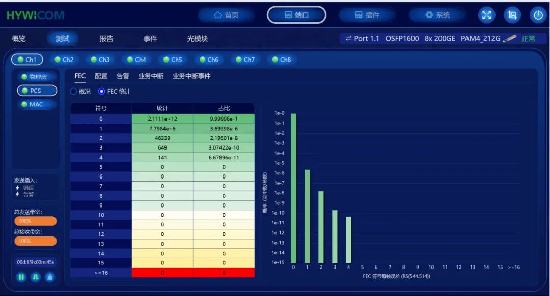 1.6T 光模块在真实以太网流量下 长时间测试的 FEC 分布