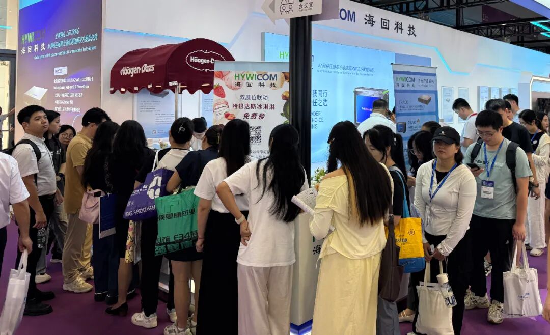 海回科技在 CIOE 的两个展位都设置了温馨的哈根达斯冰淇淋品尝区,为参会的业界朋友们提供高品质的哈根达斯冰淇淋,在忙碌的参会日休息一下,品尝这一份清凉的甜蜜。海回科技的展位今天无疑成为了整个 CIOE 现场最甜蜜的存在。这项互动活动受到大家的热烈欢迎,现场人气爆棚。