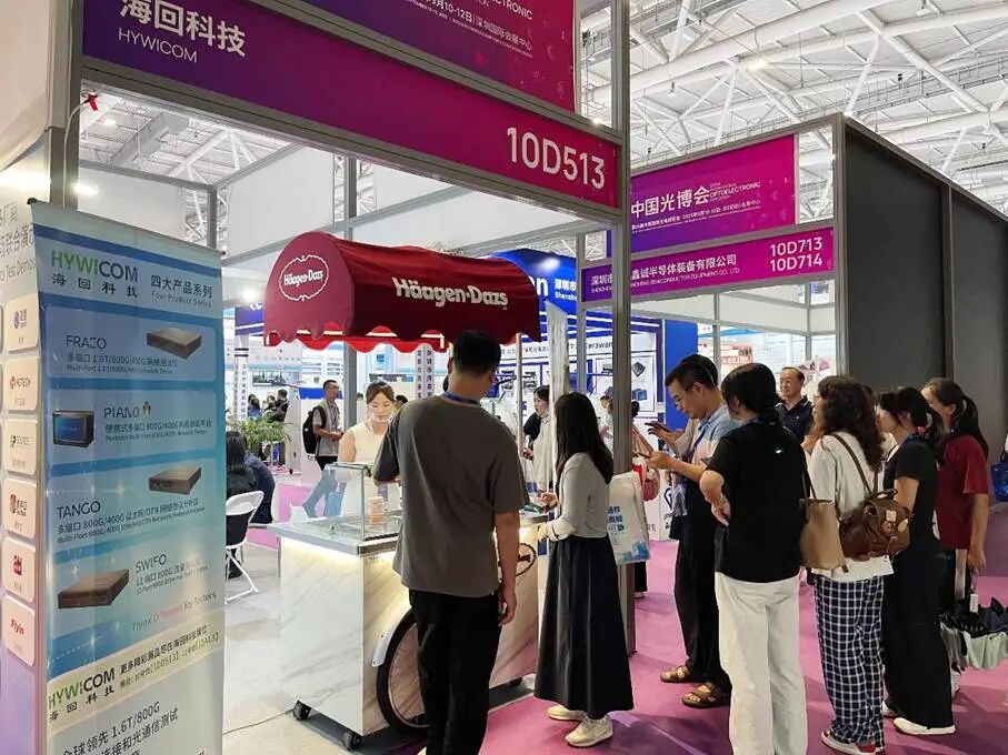 本届光博会将持续到 9月12日,海回科技在深圳国际会展中心10号馆【10D513】展位+12号馆【12A13】期待您的光临。欢迎业界同仁前来现场体验我们的创新产品,感受 1.6T 巅峰测试速度,品尝甜蜜的哈根达斯冰淇淋,共同探讨光电技术的未来发展趋势。海回科技将持续秉承“海纳百川,回转流长”的理念,为全球高速互联测试领域提供更多创新解决方案。