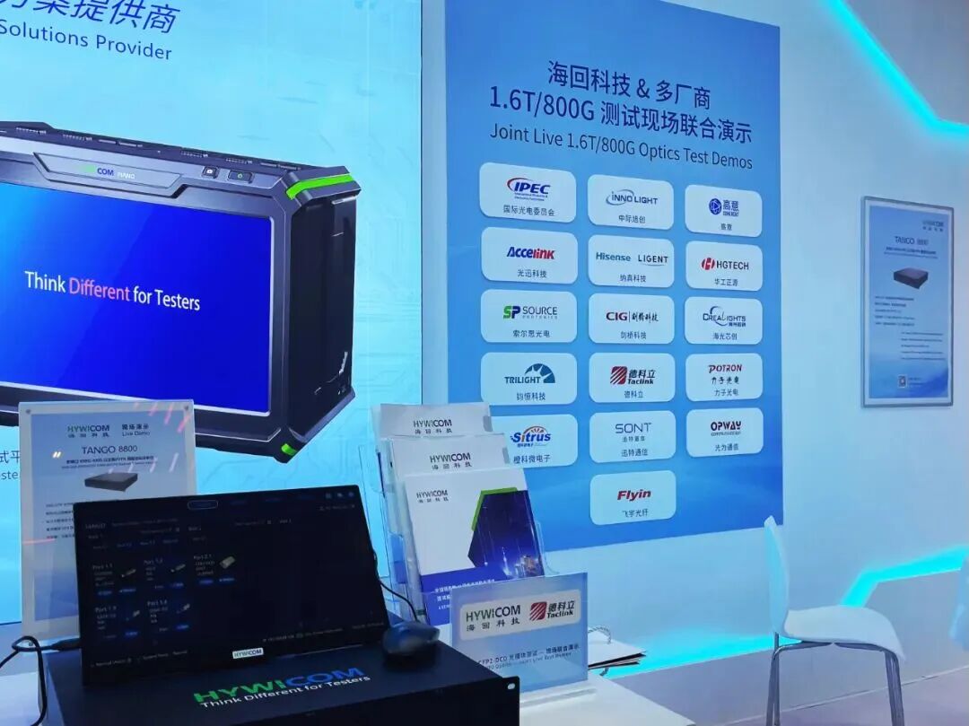 特别需要指出的是,海回科技在本次 CIOE 活动现场,携手 IPEC 国际光电委员会及近 20 家厂商进行 1.6T/800G 光模块测试现场联合展示,其测试设备已成为行业标配 —— 包括合作大量国际客户的诸多光模块厂商,其展台设备均搭载海回测试系统进行联合演示。