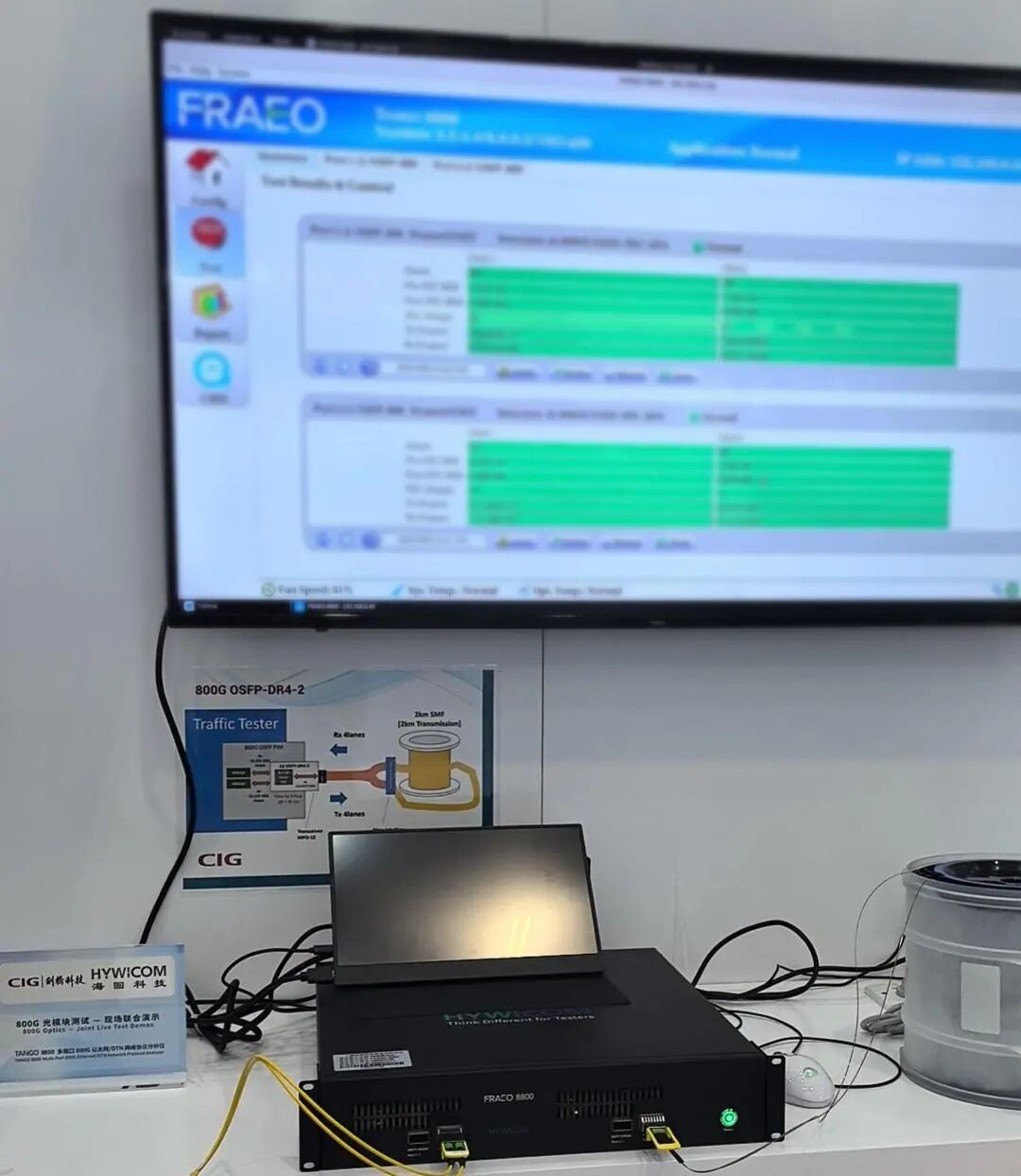 而在此次 CIOE 中国光博会这个极具影响力的场合,海外巨头第一次公开展示其 1.6T 测试产品,因此诸多光模块厂商不约而同地选择在现场对三家测试仪器展开一番 “擂台比试”。只见他们纷纷拿出自家的 1.6T 光模块,分别置于这 3家 厂商的设备上进行同等条件下的测试,这无疑为大家提供了一个直观对比各厂家设备实际表现的绝佳机缘,宛如江湖中难得一遇的高手擂台,众人皆可一观究竟。