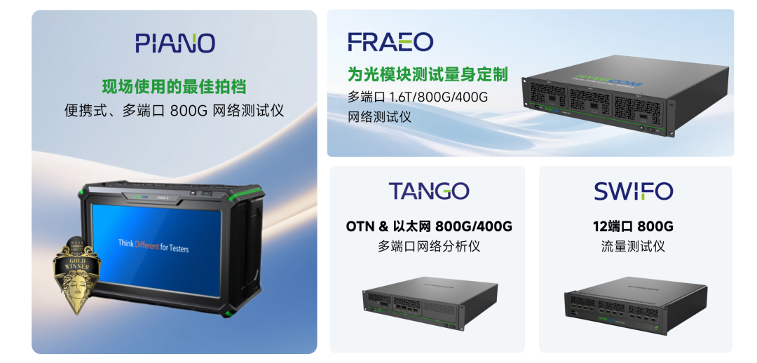 专为研发及实验室测试设计,覆盖 1.6T、800G、800G LPO/LRO、400G、100G 的以太网流量测试仪